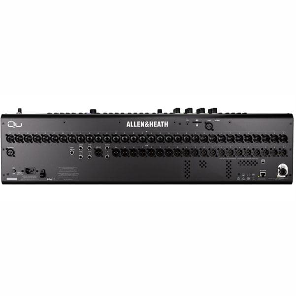 The Qu-7 comes equipped with 32 mic/line combo inputs, two stereo line inputs, 20 XLR outputs, two TRS outputs, and one stereo AES3 digital output. It features a 7″ capacitive touchscreen, 33 motorized faders, four channel strip layers, and eight SoftKeys. Additionally, the Qu-7 includes multiple options for recording/playback including a stereo USB-A port, 32×32 USB-C port, and SD card slot.